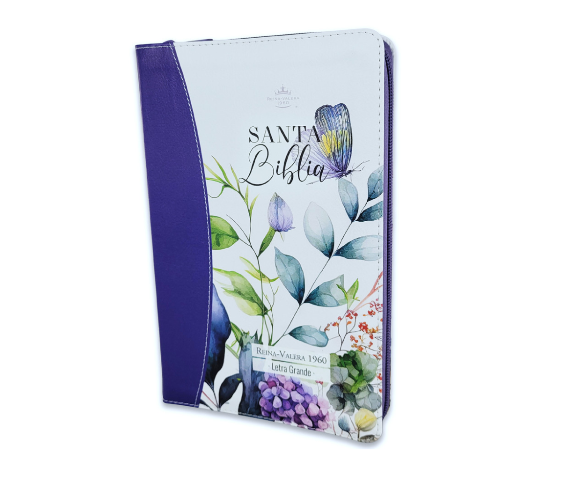 Biblia Reina Valera 1960 - Letra Grande (12 pts), Imitación Piel Jardín Púrpura con Cierre e Índice